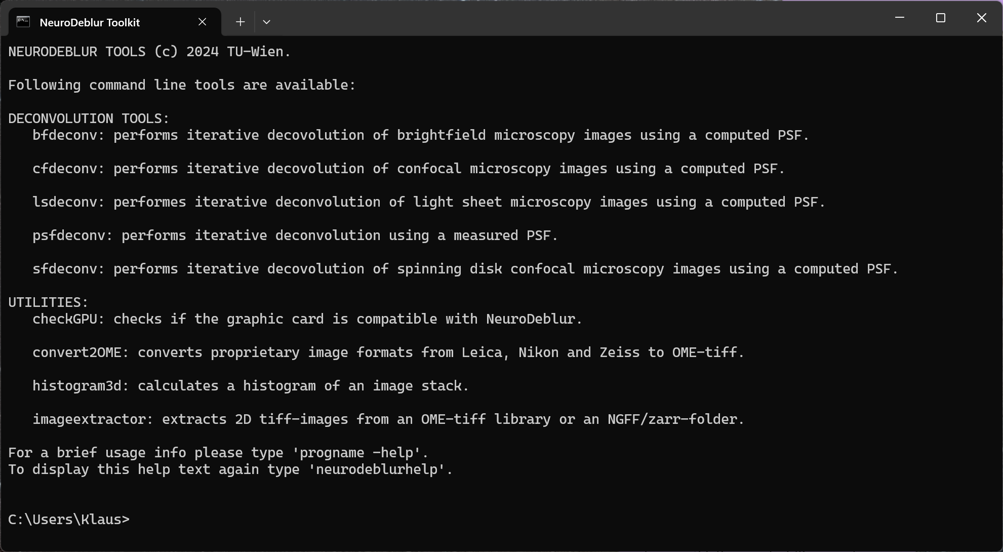 For a description of all parameters that can be used to invoke a respective deconvolution or utility program, type: